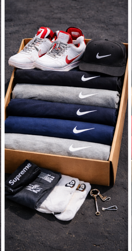 “Discover curated streetwear boxes packed with trending Nike, Adidas, Supreme and more. Each box is stacked with premium styles at unbeatable value. Whether you're upgrading your drip or flipping heat, this is where fashion meets surprise.”